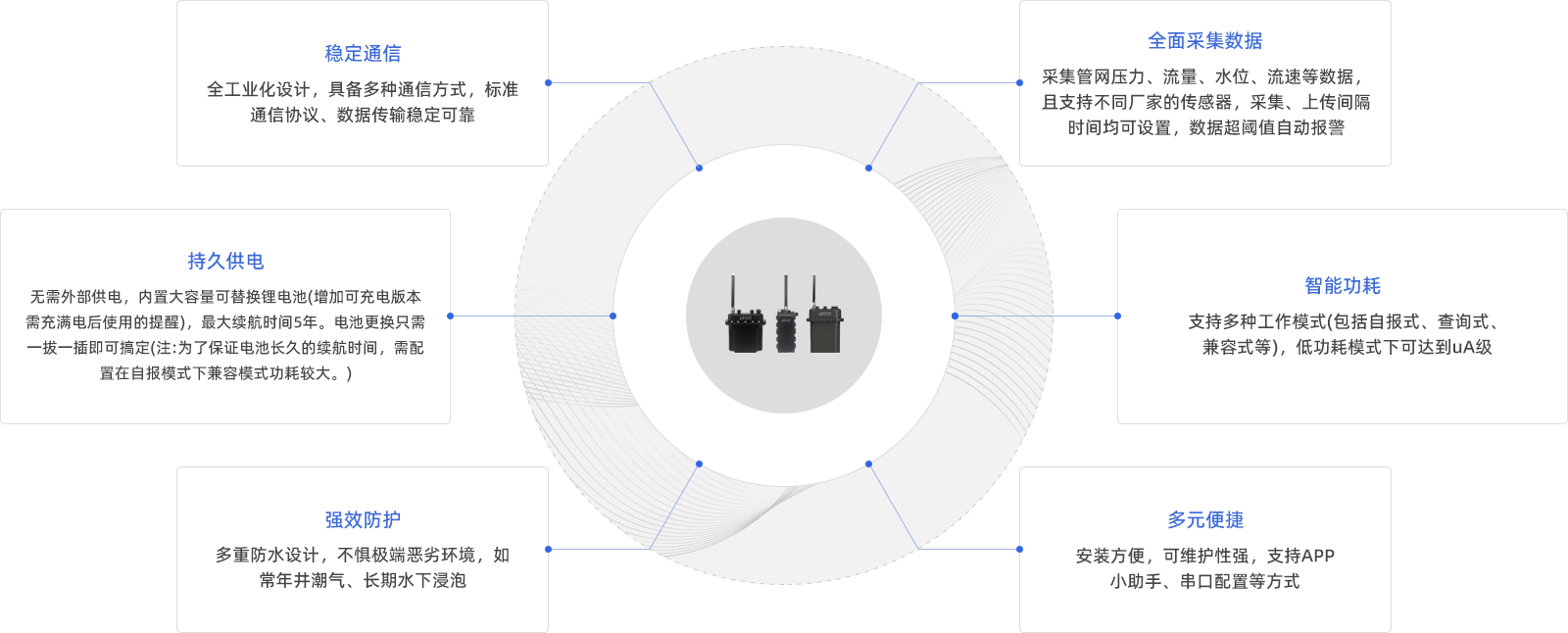 本产品是普适自主研发的高防护等级、低功耗、抗腐蚀能力强的高性能测控终端产品,适用于燃气、石油、化工管网、供水、排水管网监测。